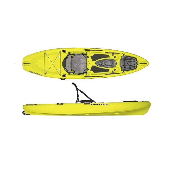 The Native Watercraft Falcon 11 is a feature rich, a super stable, compact fishing machine at a price point that”s hard to beat, especially when the cooler is packed with a fresh catch. At 11 feet long and 32.5 inches wide, the Falcon 11 slides through the water with excellent tracking and ample stability. Feature rich means hi-low frame seating, console with battery and transducer scupper access, stand up pads, ample groove track and dual flush mounted rod holders all at a price you will love.